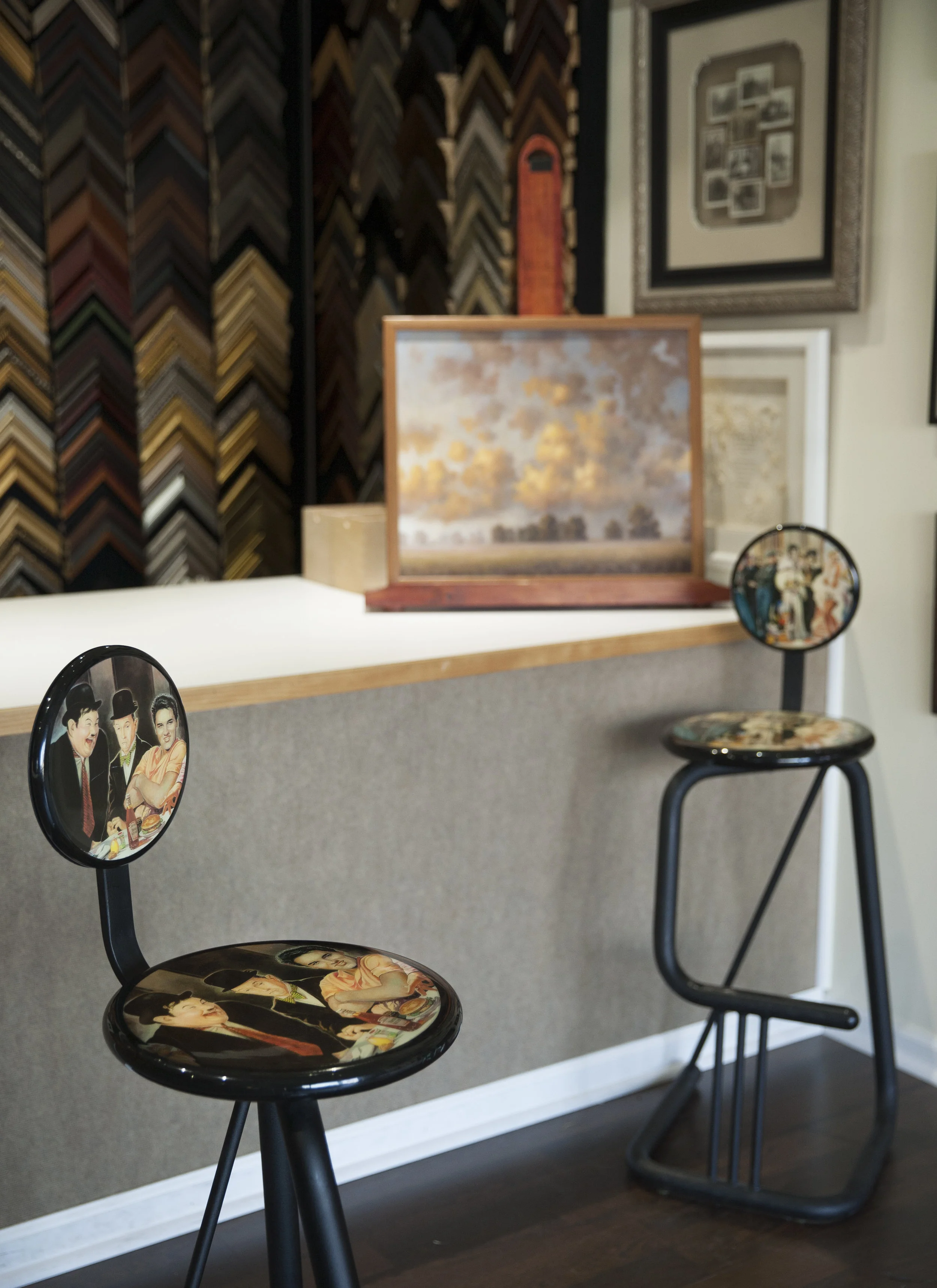 The framing process is completed from start to finish at the gallery. This allows for flexibility and also ensures your collectibles and family heirlooms stay in our hands protected from loss or damage.